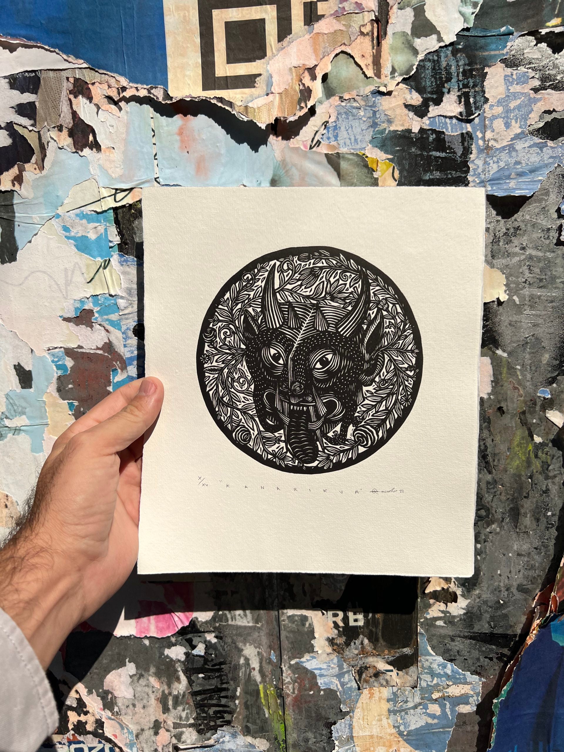 All original prints are designed, drawn, carved and printed by the artists.