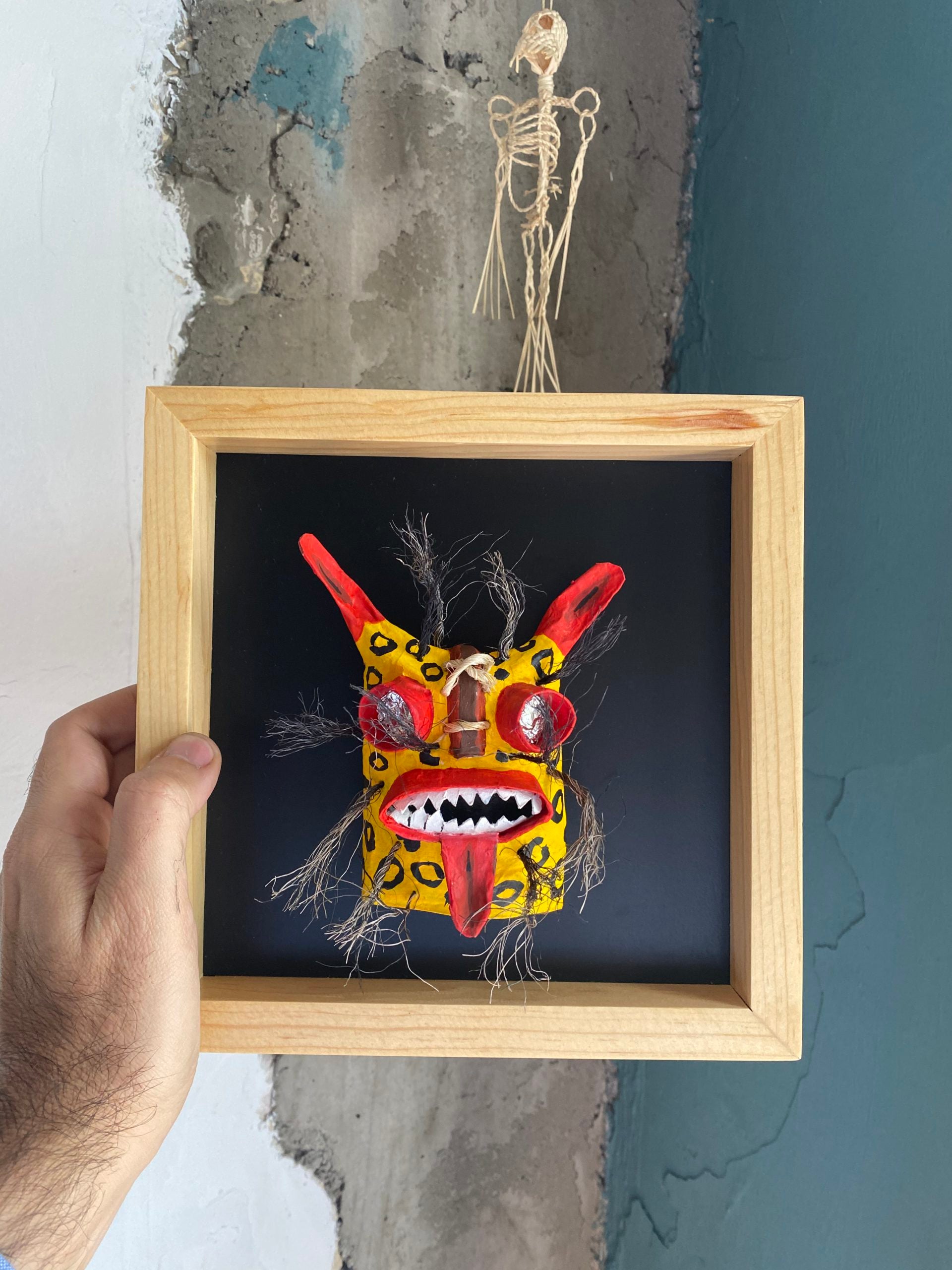 La mascara viene enmarcada y lista para colgar